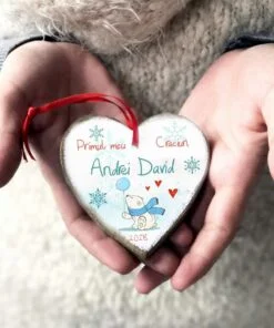 Primul meu Craciun – ornament personalizat inimioara bebe Polar Family este inimioara care iti va aminti in fiecare an de primul Craciun al bebelusului tau. Se personalizeaza cu numele micutului si anul in care Mosul i-a adus pentru prima data zambetul pe buze.