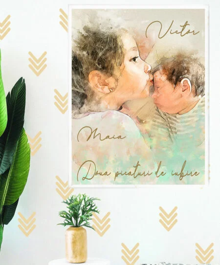Schita in creion combinata cu watercolor delicat, sau arta de a transforma momentul perfect in amintirea geniala ce o sa aduca mereu zambete pe buze! Transforma fotografia ta preferata intr-o opera de arta cu accente delicate. Tabloul Lovely Baby Sketch reda emotia aceea pe care nu o vei uita niciodata.