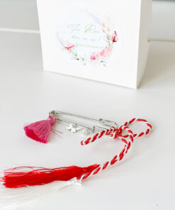 Broșa este personalizata cu ajutorul unui fluturaș din argint 925 ce poarta mandru initiala numelui ales de tine. Este înfrumusețata și cu ajutorul unui ciucuras roz și face pereche de minune cu un alt charm de argint,  o perla alba de 4 mm.