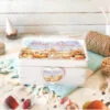 Putem face cu acelasi model cutie pentru amintiri, ghirlanda si marturii. Apasa aici ca sa vezi si alte modele.