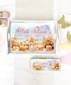 Caprioara si dovleci tavita mot personalizata si cutiuta Set 1 an combina frunzulite in nuantele soarelui tomnatic si o caprioara absolut superba. 🙂 Toate sunt integrate intr-un decor colorat delicat pentru a incununa imediat cele mai frumoase amintiri pentru copilasul tau! Setul contine o tava pentru taierea motului si o cutiuta din lemn pentru a pastra prima suvita a copilului. Tavita de mot este perfecta pentru a deveni o amintire pentru anii ce vor urma.