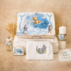 Designul are un fundal watercolor in care fiecare poate sa viseze la copilarie, aroma de stele, o luna delicata e si nori plini de povesti. Pastreaza amintirile copilariei, cu timpul ele devin comori. Pentru ca totul este sa crezi in visurile tale! Pentru visatori, iubitori de calatorii si curajosi. Intr-o lume plina de culoare si magie, printre picaturi de acuarela si vise. Ne indeamna sa ne amintim momentele superbe ale copilariei.