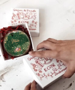 Lucrat dupa un colaj marca Le Cose Animate, cercul este din lemn, are 8x8cm si 6mm grosime, este vesel si vine impachetat in propria lui cutiuta de carton, vintage si etichetata cu un model de Craciun. Partea din spate a cercului vine standard cu eticheta pe care scrie ca produsul este lucrat manual.