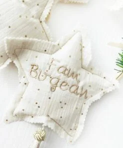Coronita Craciun personalizat Vinatage Christmas Wreath Gold Stars este o coronita handmade, realizata din lemn si stelute textile Ivoire cu auriu, si este personalizata cu numele dorit de tine. A fost gandita pentru a fi asezata la loc de cinste, poate chiar pe usa de la intrare, atarnata sau sprijinita, pentru a intregi decorul de poveste al primului Craciun impreuna. Poate fi personalizata cu alt model la cerere ?