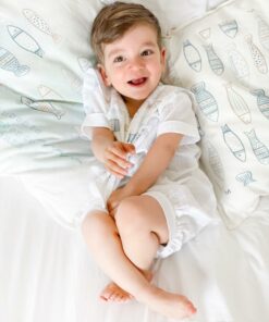 Costumas bebe din bumbac Pestisorii Veseli este darul perfect pentru un nou nascut. Pozele vor arata delicios cu ajutorul acestui delicat costumas.
