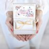Cutiuta verighete floarea soarelui – Sunny Wed are un colaj vintage cu o rama din flori de soare in nuante de galben, galben pai, vernil si rozuri delicate.. Colectia Sunny Wed te indeamna sa visezi la apusuri in lanul de floarea soarelui, in care iubirea se contopeste cu naturaletea frumusetii. Exteriorul cutiutei arata exact ca interiorul, personalizat cu numele mirilor si data.
