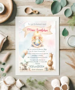 - Personalizare: Adăugăm un touch personal fiecărei invitații, incluzând numele copilului, data, ora și locația evenimentului, alături de orice alt mesaj pe care doriți să-l transmiteți invitaților.