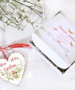 Alege martisoarele noastre din lemn in forma de inimioara personalizate cu nume sau cu logo-ul companiei! Cum altfel sa urezi o primavara frumoasa? Martisor Iubitor Spring Wish – Martisoare personalizate este vesel si ii aminteste mamei, fetitei, sotiei sau prietenei tale ca te gandesti cu mare drag la ea! Are un model watercolor delicat cu flori watercolor si este 100% lucrat manual in RO. Infrumusetata prin tehnica decoupage-ului si antichizata, inima este din mdf si este lacuita (numai lacuri ecologice pe baza de apa) pentru a o pastra ani si ani la rand ca amintire draga a unei frumoase primaveri.