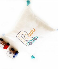 Little Car Embroidered Cushion este o pernuta vesela handmade gata sa Ii conduca pe cei mici in cea mai grozava aventura.