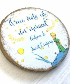 Marturiile Micul Print Magnets sunt din lemn, au 7x7cm si iti amintesc de frumoasa poveste scrisa de Antoine de Saint-Exupéry. Cerculetele vesele dar pline de eleganta iti vor face invitatii sa zambeasca si le vor ramane ca amintire ani la rand. Lucrate manual de artistii Le Cose Animate, cerculetele marturii sunt 100% Handmade in RO.