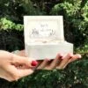 The Love Ring Pillow are 20×20 cm și este unicat, lucrată cu multă grijă, ca tu să o poți păstra amintire de la cea mai frumoasă zi din viața ta. Pentru o nuntă altfel, plină de accente shabby și de povești dulci.