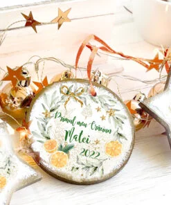 Primul meu Craciun – cerc glob personalizat bebe Portocale este perfect pentru a marca primul Craciun al puiutului tau! De asemenea este un cadou minunat pentru un bebe si familia sa! Ornamentul se personalizeaza cu numele dorit de tine.