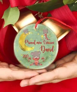 Primul meu Craciun – cerc glob personalizat Moon este perfect pentru a marca primul Craciun al puiutului tau! De asemenea este un cadou minunat pentru un bebe si familia sa! Ornamentul se personalizeaza cu numele dorit de tine.