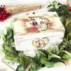 Lucrat dupa un colaj marca Le Cose Animate, cercul este din lemn, are 8x8cm si 6mm grosime, este vesel si vine impachetat in propria lui cutiuta de carton, vintage si etichetata cu un model de Craciun. Partea din spate a cercului vine standard cu eticheta pe care scrie ca produsul este lucrat manual.