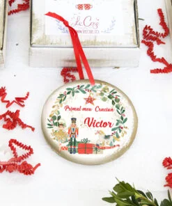 Primul meu Craciun – cerc glob personalizat The Nutcracker este perfect pentru a marca primul Craciun al puiutului tau! De asemenea este un cadou minunat pentru un bebe si familia sa! Ornamentul se personalizeaza cu numele dorit de tine.