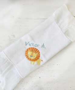 Dimensiunea prosopului este de aproximativ 40/40 cm și se personalizează prin broderie cu numele sau inițială.