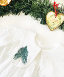 Rochita este personalizata delicat si elegant cu initiala numelui pe guler.