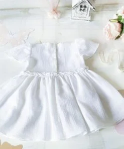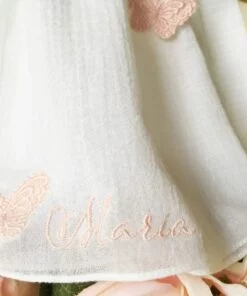 Rochita de botez poate fi personalizata cu numele micutei cu ajutorul unei broderii delicate dar si cu cei mai simpatici fluturasi 3D.