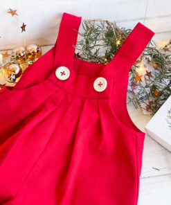 Salopeta bebe Craciun în Carouri este croit si cusut manual din panza de casa roșie, realizată din în și bumbac.