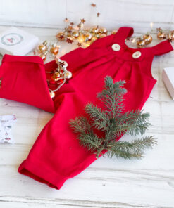 Salopeta rosie bebe Craciun este tinuta perfecta pentru cele mai reusite pose de Craciun.