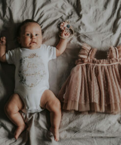 Fustita se poate asorta cu un body personalizat sau cu o cutie de amintiri pentru un cadou wow.