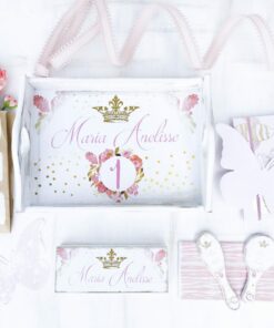 Flori delicate watercolor si o coroana aurie intr-un set care spune povesti, vesel si delicat, special creat pentru micuta ta care va implini un anisor! Este cadoul perfect pentru prima aniversare si contine o tava pentru taierea motului si o cutiuta din lemn pentru a pastra prima suvita a copilului. Set 1 An Crown – combinatia perfecta pentru o micuta printesa!