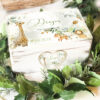 Set 1 an Jungla si Stele – tava mot si cutiuta suvita harta stelelor pentru prima aniversare a copilului tau, are un model watercolor elegant ce combina tuse aurii cu harta stelelor dintr-un moment special ales de tine – fie ca este vorba de ziua in care s-a nascut copilul sau cea in care implineste un anisor.