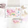 Set 1 an Noapte Instelata – tava si cutiuta mot are un model delicat cu stelute si animalute super simpatice. Designul are un fundal watercolor in care fiecare poate sa viseze la nopti pline de povesti. Cu stele, norisori, o luna eleganta si cele mai frumoase animale, totul este sa crezi in tine si in visurile tale! Pentru curajosi si visatori, aventurosi si copii cutezatori.