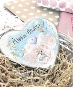 Bunny in the Stars Marturii harta stelelorsunt magneti personalizati cu harta stelelor din momentul nasterii puiul tau. Au un model delicat cu iepruasi printre stele si baloane. cu aer cald. Inimioarele din lemn vesele dar pline de eleganta iti vor face invitatii sa zambeasca si le vor ramane ca amintire ani la rand. Lucrate manual de artistii Le Cose Animate, inimioarele marturii sunt 100% Handmade in RO si au 7×7 cm si 3mm grosime 🙂