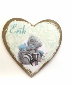 Inimioarele pot fi personalizate cu nume, data sau numar si sunt din mdf, au 7cm si 3 mm grosime. Sunt lacuite in 3 straturi pentru ca tu si invitatii tai sa va bucurati de ele ani la rand.. Decorate prin tehnica decoupage-ului, inimioarele cu ursuleti iti vor incanta privirea cu veselia lor.