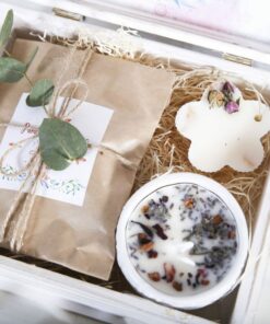 Contine: o cutie din lemn, o lumanare si o decoratiune handmade din ceara de soia, ambele parfumate cu lavanda sau trandafiri. Pentru cat mai multe clipe de relaxare am inclus si un pachet de ceai fructat delicios.