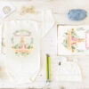 Setul contine o cutie carte personalizata din lemn (poti alege orice model de cutie de pe site, aceasta este doar un exemplu) si un Body delicat cu maneca lunga personalizat. Setul contine si o caciulita adorabila.