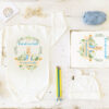 Setul contine o cutie carte personalizata din lemn (poti alege orice model de cutie de pe site, aceasta este doar un exemplu) si un Body delicat cu maneca lunga personalizat. Setul contine si o caciulita adorabila.