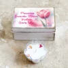 Cutiuta este infrumusetata prin tehnica decoupage-ului și se personalizează cu numele ales de tine.
