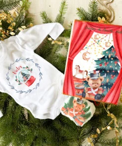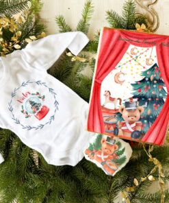 Pentru a întregii atmosfera magica de sărbători am adăugat și un body personalizat cu numele și modelul cutie.
