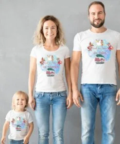 Tricourile pentru parinti si cele pentru fratiorii mai mari sunt realizate din bumbac 100% alb. In fotografiile de produs veto regasi dimensiunile tricourilor si va rugam sa le studiati cu atentie pentru a alege masura corecta.