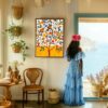 Acest tablou, îmbogățit cu nuanțe pastelate de portocaliu, roz și bleu, este o declarație de frumusețe și prospețime ce capteaza esența naturii pe o hârtie de înaltă calitate. Creat cu pasiune și tehnică excelenta, fiecare element a fost aplicat cu grijă pentru a îmbina culorile și a aduce la viață texturile și luminozitatea acestui element decorativ. Perfect pentru a adăuga o pată de culoare în orice spațiu modern, de la living la spațiul de lucru, acest tablou original este un tribut adus culorii. Adăugați această operă de artă unică colecției dvs. și lăsați-o să transforme atmosfera oricărui interior.”