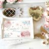 Cu acelasi model putem face cutiuta de verighete, umerase personalizate, carte cu ganduri bune, marturii si ghirlanda.