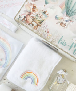Fiecare piesă din set este finisată cu o atenție deosebită la detalii, oferind un touch personal care adaugă un strat de semnificație și amintiri de neuitat. Personalizarea prin broderie transformă fiecare articol într-o amintire prețioasă, cu numele și datele importante brodate meticulos pentru a comemora aceste ocazii deosebite.