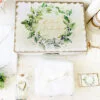 O cutie personalizata din lemn de 40x30x15cm, cu numele ales de tine și un mesaj din partea ta, un prosop pufos de 80x80cm brodat cu numele ales de tine si un model asortat. .Trusoul include si panza de botez de 1x1m brodata cu numele si data, dar si o fasa brodata cu numele.