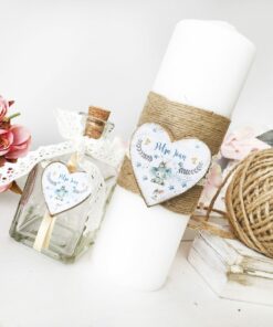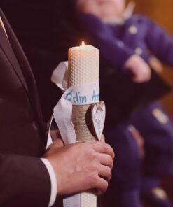 Ai ca optiuni sa completezi trusoul cu lumanarea de botez, personalizata cu numele celui mic si modelul trusoului:) dar si cu o paturica moale si delicata din bumbac personalizata cu numele lui bebe.