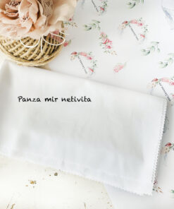 *Toate elementele sunt atent brodate cu ate de calitate si produse atent selectionate pentru a reda cat mai exact modelul ales. Produsele pot avea urme de intarituri solvabile utilizate in broderie pentru nu afecta textura materialului. Intaritura se inlatura prin spalarea prosopului, a panzei de botez etc.
