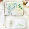 O cutie personalizata din lemn de 40x30x15cm, cu numele ales de tine, data și mesajul dorit, un prosop pufos de 80x80cm brodat cu numele ales de tine si un model asortat. .Trusoul include si panza de botez de 1x1m brodata cu numele si data, dar si o fasa brodata cu numele.