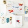 Ai ca optiuni sa completezi trusoul cu lumanarea de botez, personalizata cu numele celui mic si modelul trusoului:) dar si cu o paturica moale si delicata din bumbac personalizata cu numele lui bebe.