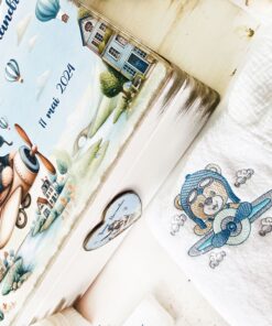 Trusou Botez Premium Personalizat din Muselină Organica – Urs Aviator
