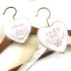 Umerase personalizate Domnisoare de onoare – The Green au un colaj delicat in nuante de vernil pal si unt, cu frunze elegante in stil watercolor si o tusa de auriu. Un model romantic si foarte elegant, clasic si vintage, in stil watercolor. Frunzele de eucalipt dau o aroma fresh designului nou. Te indeamna sa visezi la pasiunea si bucuria dintre iubiti. Visezi dintotdeauna la o nunta de poveste? Atunci ai ajuns exact unde trebuie! Nu rata umerasele noastre vintage personalizate cu cate o inimioara detasabila create special pentru domnisoarele de onoare! Sunt din lemn, antichizate si vopsite in alb si maro, iar inimioarele pot avea orice model doresti, cu orice font si culoare. 🙂