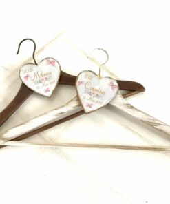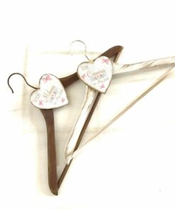 Visezi dintotdeauna la o nunta de poveste? Atunci ai ajuns exact unde trebuie! Umerase personalizate Watercolor sun umerase vintage personalizate cu cate o inimioara detasabila. O poti folosi mai apoi si ca decor la nunta! Sunt din lemn, antichizate si vopsite in alb si negru/maro. (culoarea depinde de stocurile disponibile). Inimioarele pot avea orice model doresti, cu orice font si culoare. 🙂