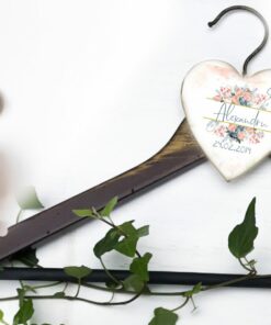 Umerase personalizate Mire si Mireasa – Set Coral Wed fac parte dintr-o colectie romantica.  delicata, eleganta si plina de povesti. Visezi dintotdeauna la o nunta de poveste? Atunci ai ajuns exact unde trebuie! Nu rata umerasele noastre vintage personalizate cu cate o inimioara detasabila (o poti folosi mai apoi si ca decor la nunta)! Sunt din lemn, antichizate si vopsite in alb si maro, iar inimioarele pot avea orice model doresti, cu orice font si culoare. 🙂